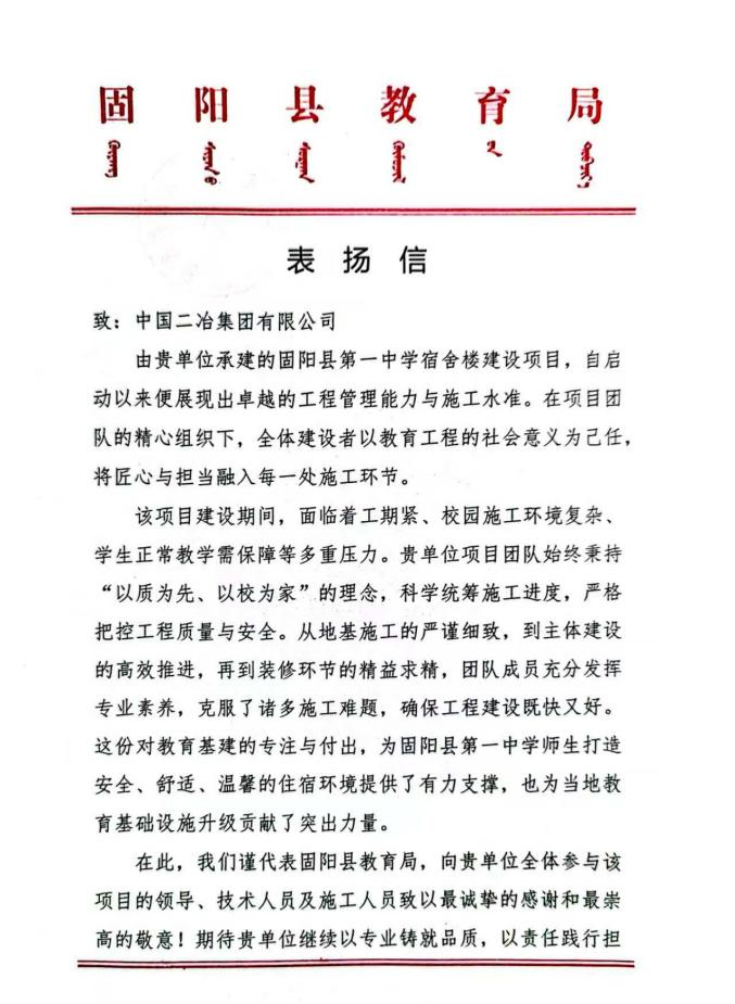 此次表揚(yáng)信不僅是對(duì)項(xiàng)目團(tuán)隊(duì)的認(rèn)可,更是對(duì)中國二冶品牌實(shí)力的彰顯。公司將繼續(xù)傳承“堅(jiān)韌不拔,勇攀高峰”的精神,在民生工程與教育基建領(lǐng)域持續(xù)發(fā)力,以專業(yè)能力踐行社會(huì)責(zé)任,為城市的發(fā)展建設(shè)貢獻(xiàn)力量。