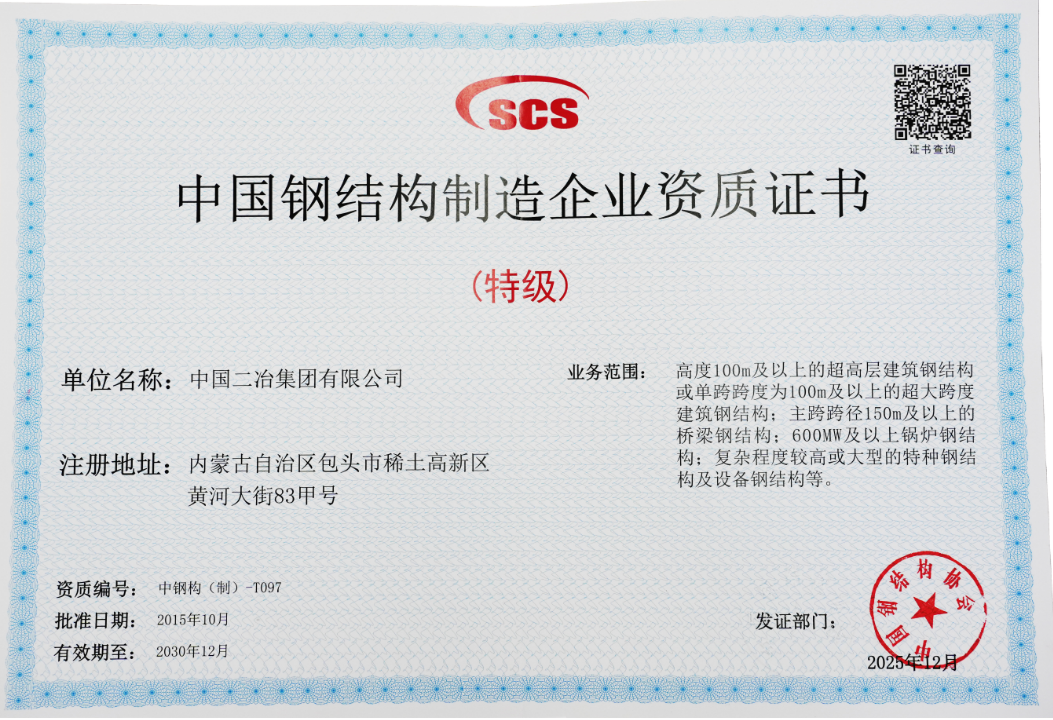 此次特級資質(zhì)復(fù)審的順利通過,既是對中國二冶過往發(fā)展成果的肯定,更是推動其未來前進(jìn)的動力。下一步,中國二冶將堅定不移錨定中國中冶“一創(chuàng)兩最五強(qiáng)”奮斗目標(biāo),為持續(xù)推動鋼結(jié)構(gòu)行業(yè)高質(zhì)量發(fā)展、助力鋼結(jié)構(gòu)強(qiáng)國建設(shè)貢獻(xiàn)“二冶力量”。
